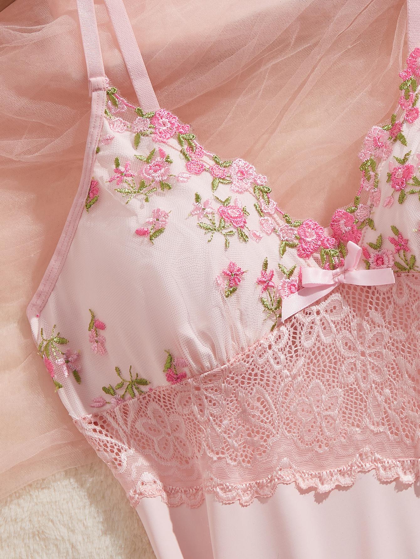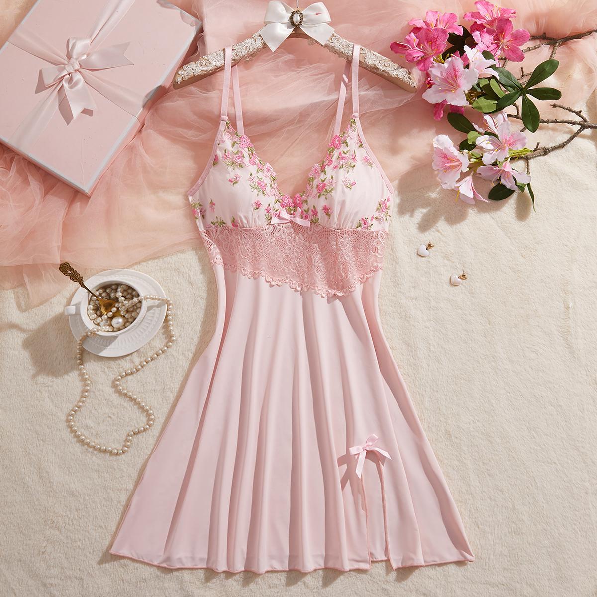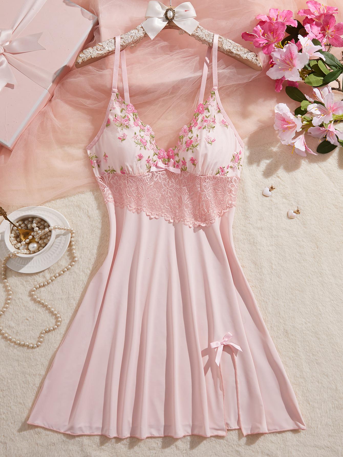 Elegant Design:This chemise features a romantic floral embroidery, perfect for a touch of elegance.The V-neck and spaghetti straps add a delicate charm.🌸