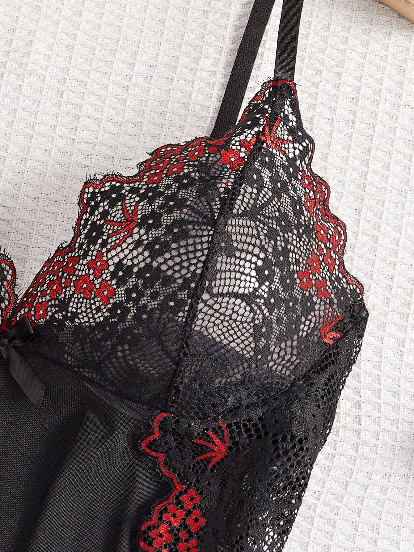 AgeRose Women's Two Pieces Sexy Lace Floral Embroidered Chemise Nightwear Sheer Mesh Chemise Sleepwear New Year Gift Valentine's Day Gift